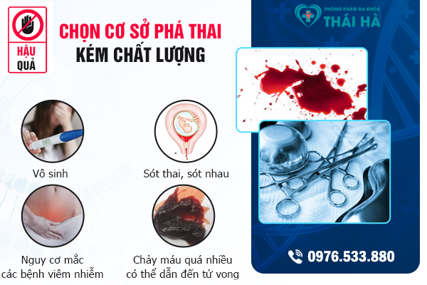 Băng huyết: Nguy cơ cao do kỹ thuật thực hiện không đảm bảo, gây tổn thương tử cung.