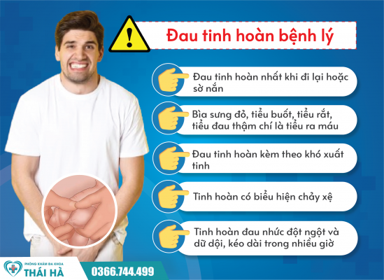 - Đau tinh hoàn dữ dội, nhất là khi di chuyển.