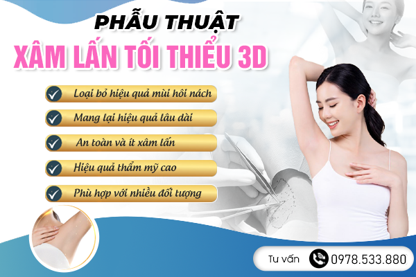 Phẫu thuật xâm lấn tối thiểu 3D hiện là phương pháp trị mùi hôi nách nhanh nhất và hiệu quả nhất, điều trị mùi hôi nách tuân theo khái niệm xâm lấn tối thiểu tiên tiến quốc tế và áp dụng công nghệ hình ảnh hệ thống thị giác siêu dẫn 3D y tế.