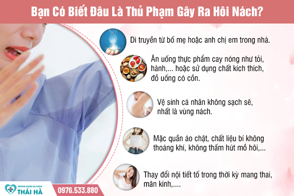 Có rất nhiều nguyên nhân dẫn đến tình trạng tăng tiết mồ hôi vùng nách trong đó có một số nguyên nhân hôi nách thường gặp như: