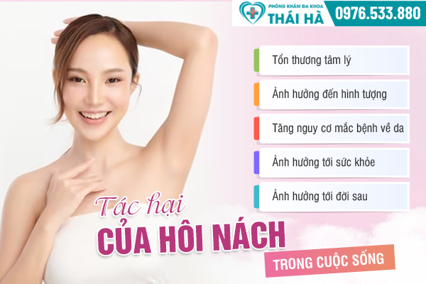 Ảnh hưởng tới sức khỏe: Nách là khu vực tập trung nhiều vi khuẩn nên dễ phát sinh các bệnh về da, tuyến mồ hôi phát triển mạnh khiến da bị khô, sạm, cơ thể mất nước,...từ đó ảnh hưởng tới độ ẩm của cơ thể, những cặn bã dễ dàng tồn động khiến “độc tố” không được giải phóng ra ngoài.