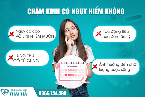 Ảnh hưởng đến chất lượng cuộc sống: Tùy vào cơ địa mỗi người mà tình trạng chậm kinh gây ra nhiều triệu chứng khó chịu ảnh hưởng đến các hoạt động sinh hoạt thường ngày như đau bụng, đau lưng, khí hư ra nhiều, cơ thể uể oải, mệt mỏi,...