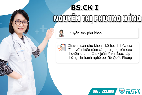 - BS.CK I Nguyễn Thị Phương Hồng - Chuyên sản phụ khoa - Kế hoạch hóa gia đình với nhiều năm công tác, nghiên cứu chuyên sâu tại Cục Quân Y và được cấp chứng chỉ hành nghề bởi Bộ Quốc Phòng.