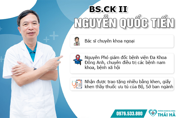 - BS.CK II Nguyễn Quốc Tiến - Nguyên Phó giám đốc bệnh viện Đa Khoa Đông Anh, chuyên điều trị các bệnh nam giới, bệnh xã hội. Bác sĩ nhận được trao tặng nhiều bằng khen, giấy khen thầy thuốc ưu tú của Bộ, Sở ban ngành.