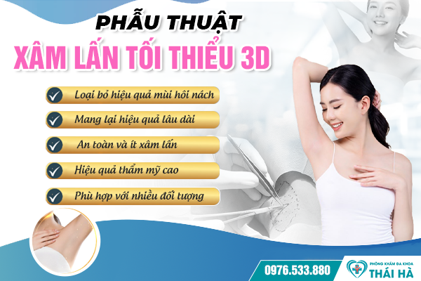 Phòng Khám Đa Khoa Thái Hà hiện nay đã và đang áp dụng thành công phưpháp công nghệ xâm lấn tối thiểu 3D hỗ trợ điều trị hôi nách hiệu quả. Phương pháp phẫu thuật này làm lành vết thương nhanh chóng và có tác dụng rõ rệt.
