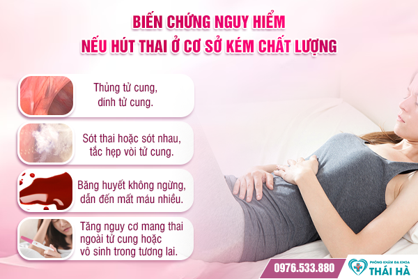 Hút thai không an toàn có thể gây ra hiện tượng sót nhau. Điều này dẫn đến viêm nhiễm tử cung, nhiễm trùng máu và đe dọa trực tiếp tính mạng của chị em.