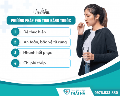 Phá thai bằng thuốc có ưu điểm là an toàn, hiệu quả cao, ít biến chứng và chi phí thấp. Tuy nhiên, phương pháp này chỉ áp dụng được cho thai dưới 7 tuần tuổi và thai phụ phải đáp ứng các điều kiện sau: