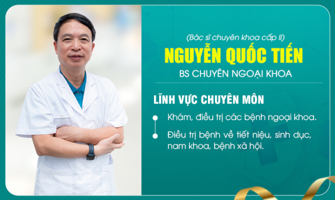 - Bác sĩ Nguyễn Quốc Tiến: Từng được đào tạo chuyên sâu tại Học viện Quân y và Đại học y Hà Nội, trong quá trình công tác bác sĩ đã có kinh nghiệm làm việc tại nhiều bệnh viện lớn