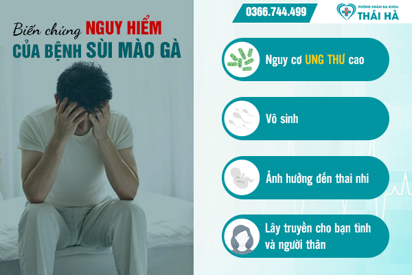 Sùi mào gà kéo dài gây cản trở khả năng sinh sản của cả nam và nữ giới, dẫn đến vô sinh - hiếm muộn. Ở phụ nữ có thể gây mang thai ngoài tử cung, sảy thai, sinh non,...
