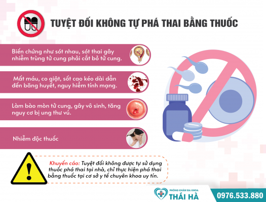 Lưu ý: Khi quyết chấm dứt thai kỳ bằng thuốc thì phải thông qua sự hướng dẫn, theo dõi chặt chẽ của bác sĩ sản khoa. Tuyệt đối không được tự ý sử dụng thuốc để tránh các biến chứng hay các hậu quả không tốt ảnh hưởng đến sức khỏe và khả năng sinh sản đáng tiếc sau này.