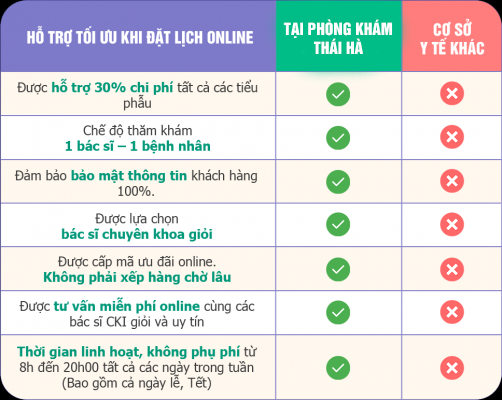 Mọi khách hàng đều được giảm ngay 30% chi phí trị liệu và tiểu phẫu khi đăng ký đặt lịch Online trước TẠI ĐÂY.