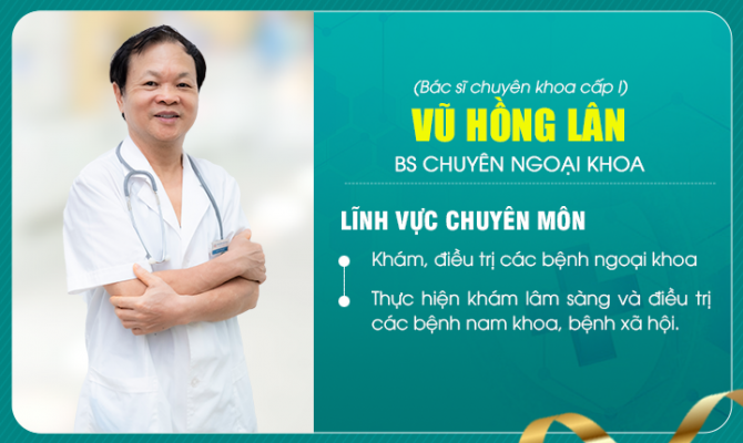 Bác sĩ Vũ Hồng Lân: Nguyên chủ nhiệm khoa ngoại bệnh viện Quân y 354, với hơn 30 năm công tác, bác sĩ đã khám chữa và điều trị cho rất nhiều ca bệnh khó.